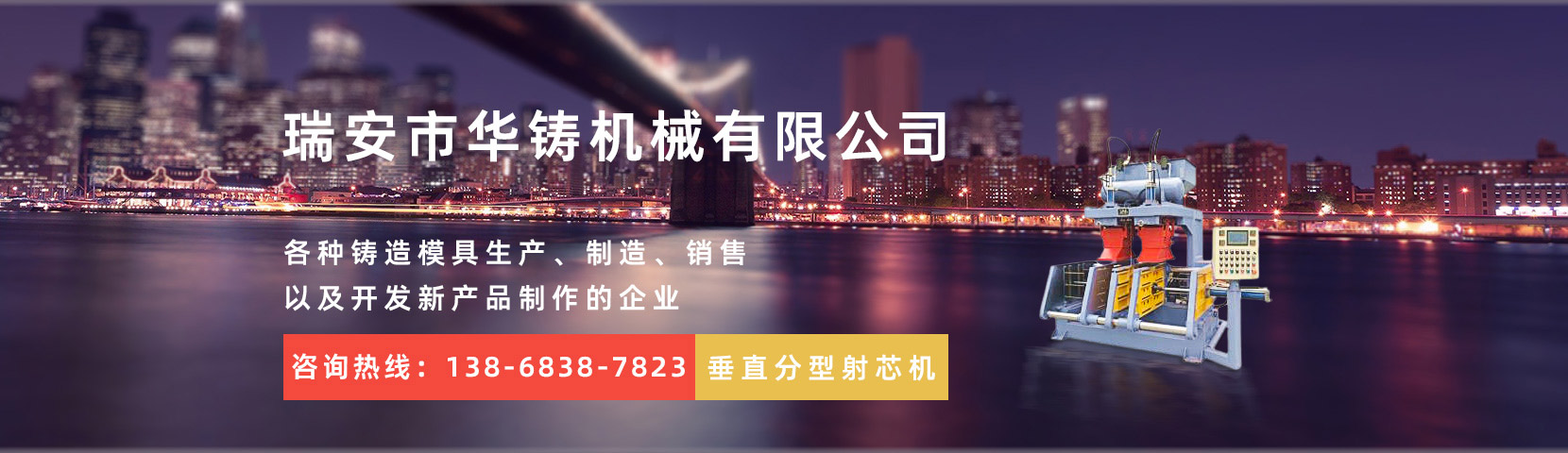 瑞安市華鑄機械有限公司,創建于2014年,位于經濟發達的機械制造基地——溫州。本公司是一家致力于全自動重力澆鑄機、射芯機殼芯機、覆膜砂設備、各種鑄造模具生產、制造、銷售以及開發新產品制作的企業。